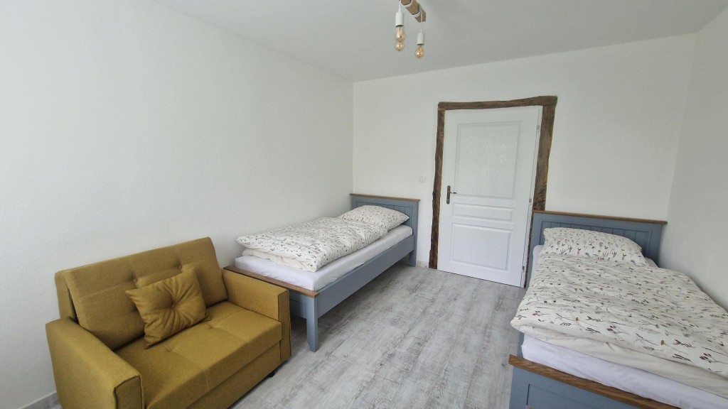 The accommodation consists of 3 separate apartments with a total capacity of up to 20 people. You can rent the apartments individually or the entire apartment house. There is private parking, free Wi-Fi, a spacious garden with a gazebo, fireplace and barbecue. A trampoline and swings are available for children. All areas are non-smoking.